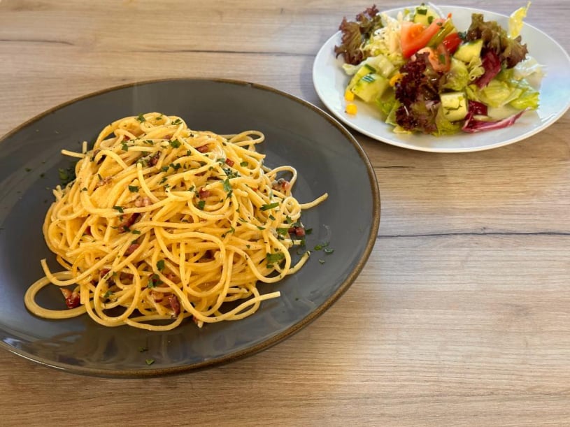 Der Grillteller, das Wiener Schnitzel oder das Jägerpfandl werden ihnen unter vielem Anderen ebenso munden wie die wechselnden Tagesgerichte oder eine der bunten Salatplatten.